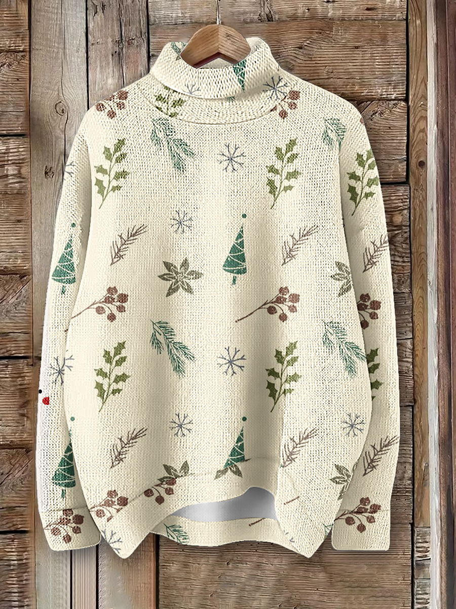 Women's Christmas Art Print Knit Turtleneck Pullover Sweater