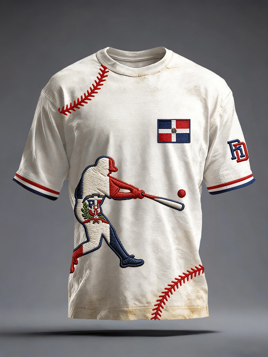 Men's Dominican Republic Baseball Inspired Print Vintage T-Shirt